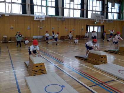 とびばこでは、レインボージャンプや よことびこしなどをしています。
