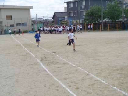学年で50m走の記録を測定をしました。去年よりも記録が伸びていた人が多く、高学年らしく、力強く走る姿が見られました。