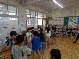 今日から、ひまわり学級と全クラスが交流する『なかよしタイム』が始まりました。ひまわり学級の高学年が司会をし、はじめの言葉やおわりの言葉は、2、3年生が担当しています。今年はトントンずもう、ボッチャ、どんじゃんけんポン、フルーツバスケットの4つの遊びを楽しみます。交流を通して、子供たちへの理解が深まり、もっと仲良くなっていけばいいなと思っています。