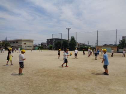 運動場でドッチボール、おにごっこをするグループがたくさんでした。