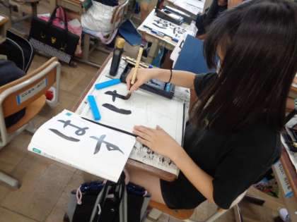 筆を浮かせるタイミングがとても難しいですが、みんな集中して書いています。