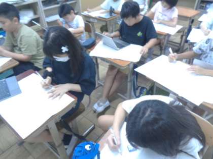 図画工作科の学習では、お話の絵に取り組んでいます。物語を聞いて、自分の描きたい場面をイメージして絵に表現します。どんな絵が完成するか楽しみですね。