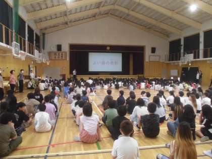 6月の「おおやぶタイム」で校長先生より「よい歯の表彰」を受けた6年生、3名の児童の紹介があり、全校のみんなから大きな拍手をもらいました。
