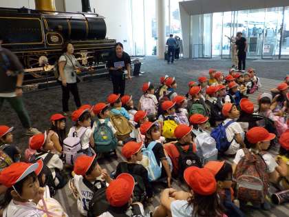博物館内で一番目を輝かせていたのは、2階にある切符コーナーでした。館内で作れるオリジナルの切符を作ったり、実際に改札を通ったり、とても楽しく思い出に残る活動になりました。屋上から眺める京都の線路や電車の様子もとても楽しんでいました。