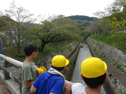 昼食後は、大津港へ向かいました。琵琶湖疎水のスタート、第一疎水の取水口、大津閘門、第一トンネル入口を見学しました。「この水が、わたしたちのところに綺麗な水として届くのか」と感慨深げな子ども達でした。