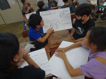 動物の骨や筋肉の働きについて調べたことをまとめ、友だちと交流しました。