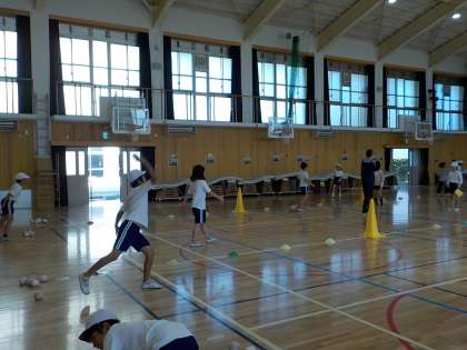 45度の角度を意識して投げる、助走でリズムをつけるなど、めあてをもって取り組みました。