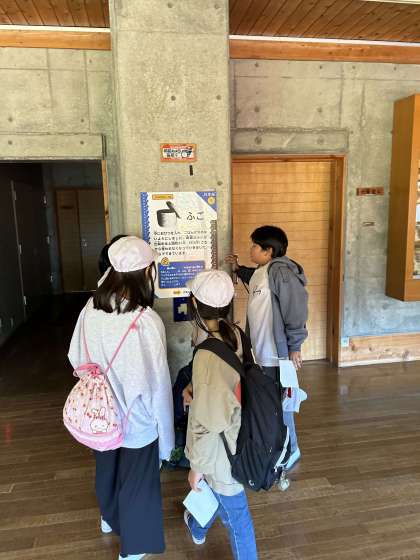 館内パズルラリーをしています。グループで協力しながら難しい問題を解いています。
