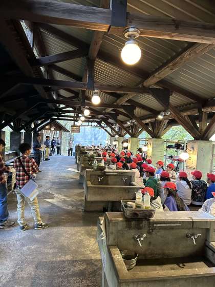 野外炊事の始まりです。所員さんから説明を聞きます。