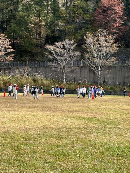 無事全員下山し、休憩・水分補給をしました。今は広い芝生グランドで自由に遊んでいます。