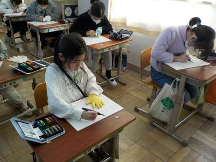 彫刻刀の種類や持ち方などについて学習しました。