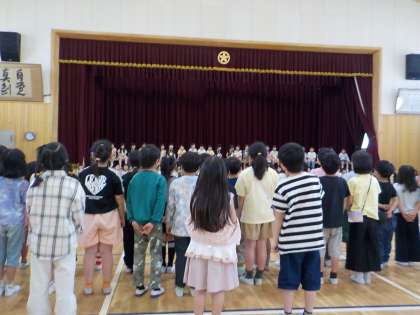 今日は1年生をむかえる会がありました。2年生からは歌をプレゼントしました。直前まで少し緊張しているような姿も見られましたが、本番では元気な歌声を1年生に届けることができました。