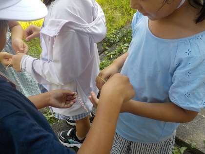 草ずもうを楽しんだり、笹船や花かんむりを作ったりしました。