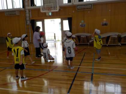四角や三角の形のコートで、外野と内野にわかれてゲームを行います。