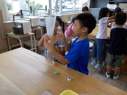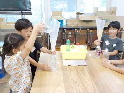 水を移し替えたり同じ入れ物にいれたりすると、かさを比べることができることを発見できました。