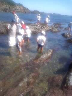 磯観察に熱中する子ども達。なんと、タコを発見!