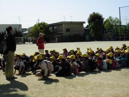 雲ひとつない五月晴れとなりました。今日は遠足です。まず,3年生が,将軍塚に向かって出発しました。