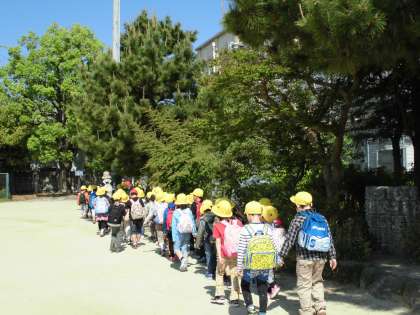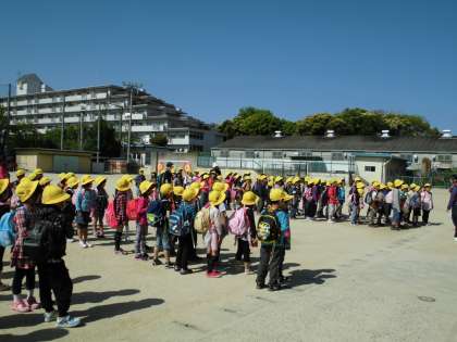 1,2年生は一緒に,梅小路公園に行きます。ボールや縄跳びを持って出かけました。楽しく遊んできてね!