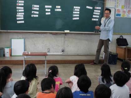 2年生は,生活科で野菜を育てます。今日は地域の方にゲストティーチャーとして来ていただき,どんな野菜が育てられそうか,野菜にはどんな特徴があるのかなどについてお話を聞きました。これから夏に向けて,いろいろな野菜が収穫できるでしょう,楽しみです。