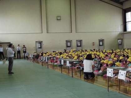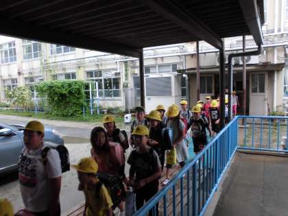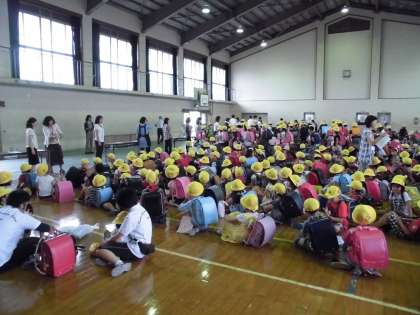4時間目は,震度5弱の地震を想定した引き渡し訓練を行いました。子どもたちは落ち着いて整然と避難し,保護者の方を待つことができました。