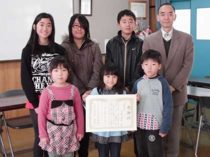 本校では,京都・山城人権啓発活動地域ネットワーク協議会からいただいた「人権の花」を育ててきましたが,今日,そのことで感謝状をいただきました。プランターのスイセンも寒さに負けず,元気に育っています。この花のようにほっこりと周りを癒やせる大藪小学校のみんなでいたいと思います。