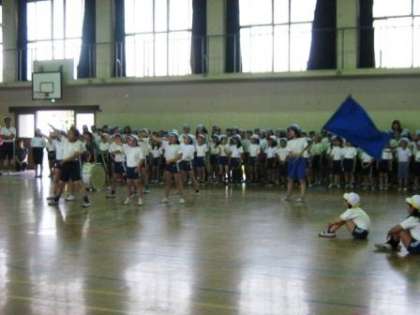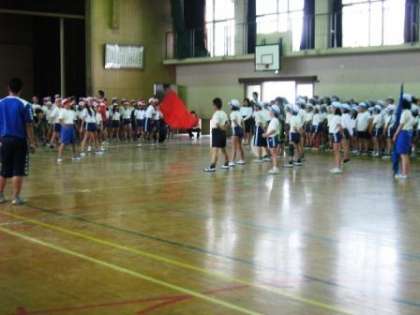 本来は,運動場で全校練習ですが,雨のため体育館で1時間だけ応援練習をしました。