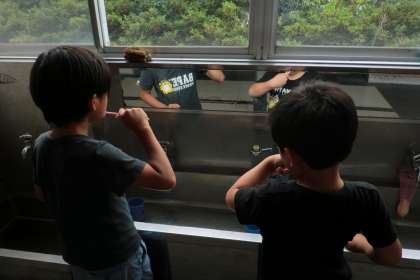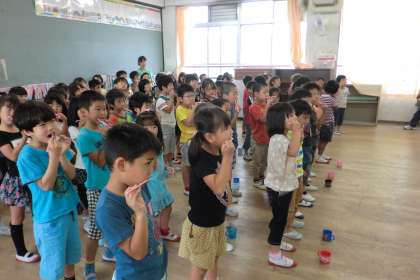 歯磨き指導で正しい歯の磨き方を教えてもらいました。その後から、給食を食べた後の歯磨きをがんばってやっています。