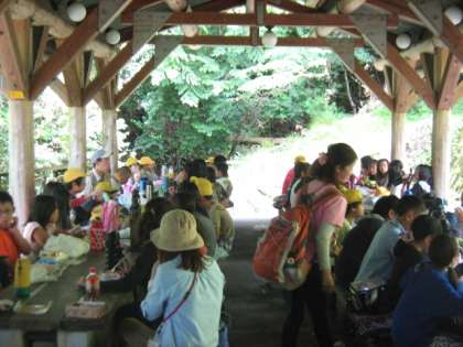 その後,野外炊事場で楽しそうに昼食をとっていました。これから,ごはんとカレー作りにチャレンジです。