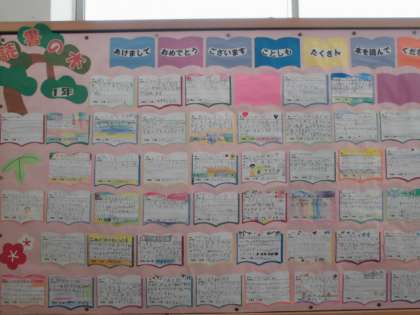 冬休み,各ご家庭で「親子読書」に取り組んでいただいたことと思います。学校図書館の前には,子どもたちが読んだ本を紹介する「読書の木」が月ごとに学年替わりで掲示してありますので,ご来校の際には是非ご覧ください。1月は1年生が昔話を紹介しています。