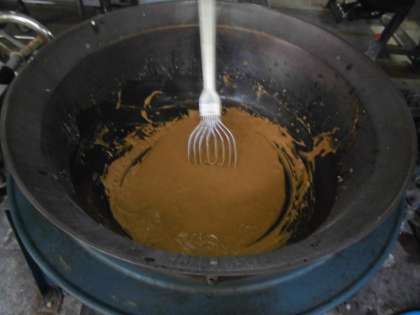 今日のチキンカレーのルーは,手作りです。バター・サラダ油・小麦粉を茶色くなるまで十分にいため,空いりしたカレー粉・お湯で溶いた脱脂粉乳を加えて出来上がりです。