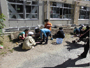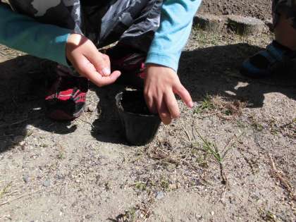 今年度も学校の花壇を使い栽培活動をしました。今年は野菜を育てようということで事前に子どもたちと話し合い,育てたいものを決めました。たくさん出た意見の中から今日は「えだまめ」と「ミニトマト」の種を植えました。さらに「なす」の苗も植えました。小さくてすぐに無くなってしまいそうな種ですが,子どもたちは丁寧に植えていました。