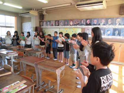 自己紹介の後は,きれいな歌声を教室中に響かせていました。