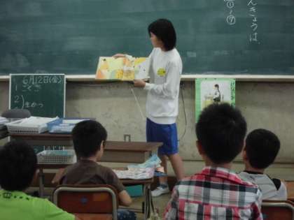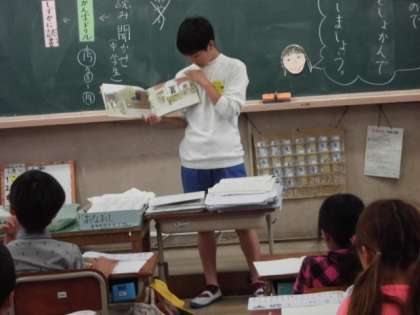 毎朝,2年生の教室で,絵本の読み聞かせをしています。