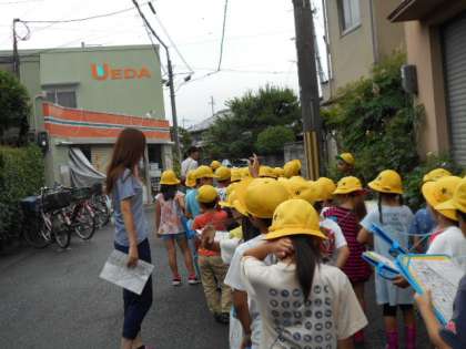 生活科「だいすきいっぱいわたしのまち」という単元で校区について学習しています。今日は校区探検に行きました。「こんなお店があるなんて知らなかったよ。」「もっと調べてみたいな。」などの感想を持った子がたくさんいました。また、自分で左右を確認して横断歩道を渡るなど、道の歩き方も気を付けることができました。