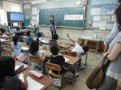 1年生にとっては,初めての日曜参観でした。周りを気にしながらも,片仮名や時計の学習を頑張っていました。