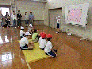 今年の日曜参観も恒例のひまわりスポーツを行いました。追いかけ玉入れやボールのはこびっこの活動では,参観に来ていただいた保護者の方にも協力していただき,子どもたちと一緒に体を動かしてもらいました。