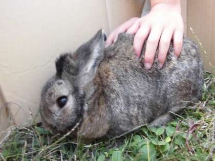 学校で飼育しているウサギに実際に触れ,触った感じや体の特徴,世話の仕方などを知るとても貴重な時間となりました。