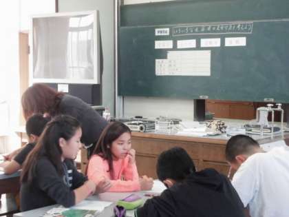 6年生の理科の様子です。見た目は全く同じ無色透明の4本の試験管,それぞれどんな水溶液が入っているかを調べるという学習です。リトマス紙だけで分かるものと分からないもの,同じ酸性ならどうやって区別するのか・・・?学習したことをもとに筋道立てて考えていくことは,学力を伸ばしていく上でとても大事な力です。