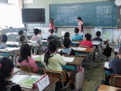 3年生の教室を覗くと,算数の時間でした。自分の考えを黒板を使って話す子,友だちの考えを一生懸命聞こうとする子・・・みんな頑張っています。