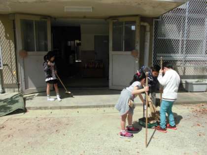 掃除時間には,落ち葉掃きや,管理用務員さんのお手伝いを頑張る姿が見られました。