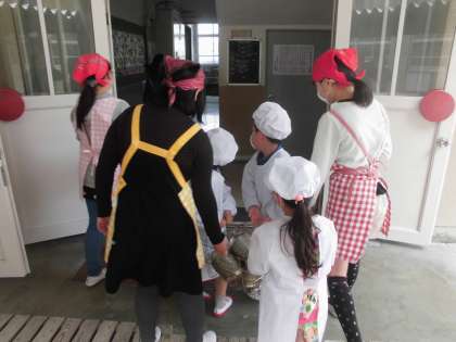 今週は町別集会や給食の準備・後片付けで1年生と関わりました。