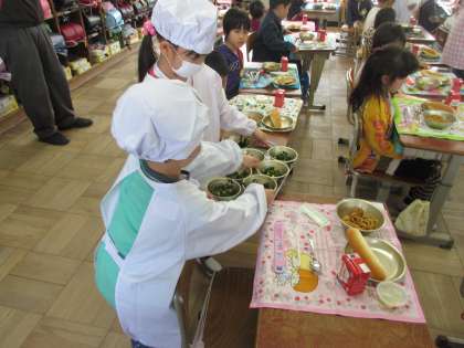 給食当番がんばっています!(1年生)
