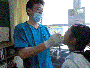 学校医(歯科)の横田先生が今年度も子どもたちの歯の検診に来てくださいました。