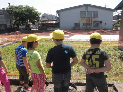 南北に長い大藪校区,普段の通学路から見る景色も,注意して見てみると,「こんな所に畑があったんや!」「この建物なんやろ?」面白い発見がたくさんあります。校区探検で気付いたことや疑問点を,これから,社会の学習に活かしていきます。