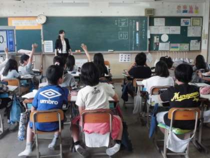 5年生は,クイズを交え,楽しく漢字学習をしていました。部首やオンについて知っておくと,漢字の世界も広がりそうですね。