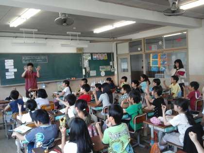 じゃんけんゲーム,ビンゴゲーム,Howmany quiz などの楽しい活動を通して,自然と「 hello!」「byebye!」「Thank you!」「How many point?」などの言葉も出ていました。4年生の頃から外国語活動に親しんでいる5年生,子どもたちのやる気が感じられた授業でした。