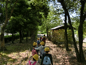 一度は雨天のため延期になってしまいましたが,天候にも恵まれ本日,子どもたちが楽しみにしていた遠足に行ってきました。出発する前には校長先生とハイタッチ。長い道のりですが,子どもたちは元気に出発し宝ヶ池公園に向かいました。