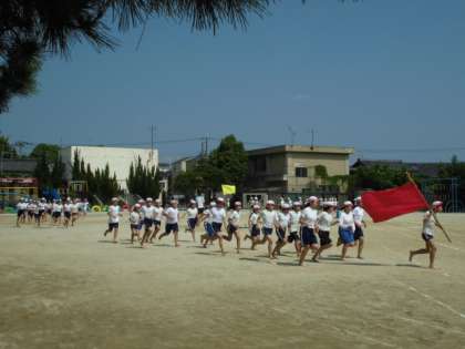 勇壮な入場とお楽しみのマイクパフォーマンス。5年生の騎馬戦練習も,各色一致団結した様子が見られるようになってきました。
