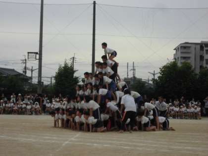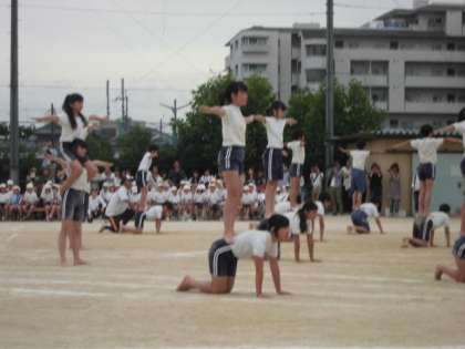 6年生組み立て体操の様子その2です。頑張る姿,見ている人たちにも感動を与えてくれました。