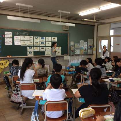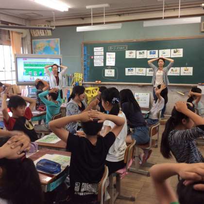 中学校の先生に合わせて発音したり、cardを取るゲームに真剣に取り組んだりと、とても楽しそうでした。